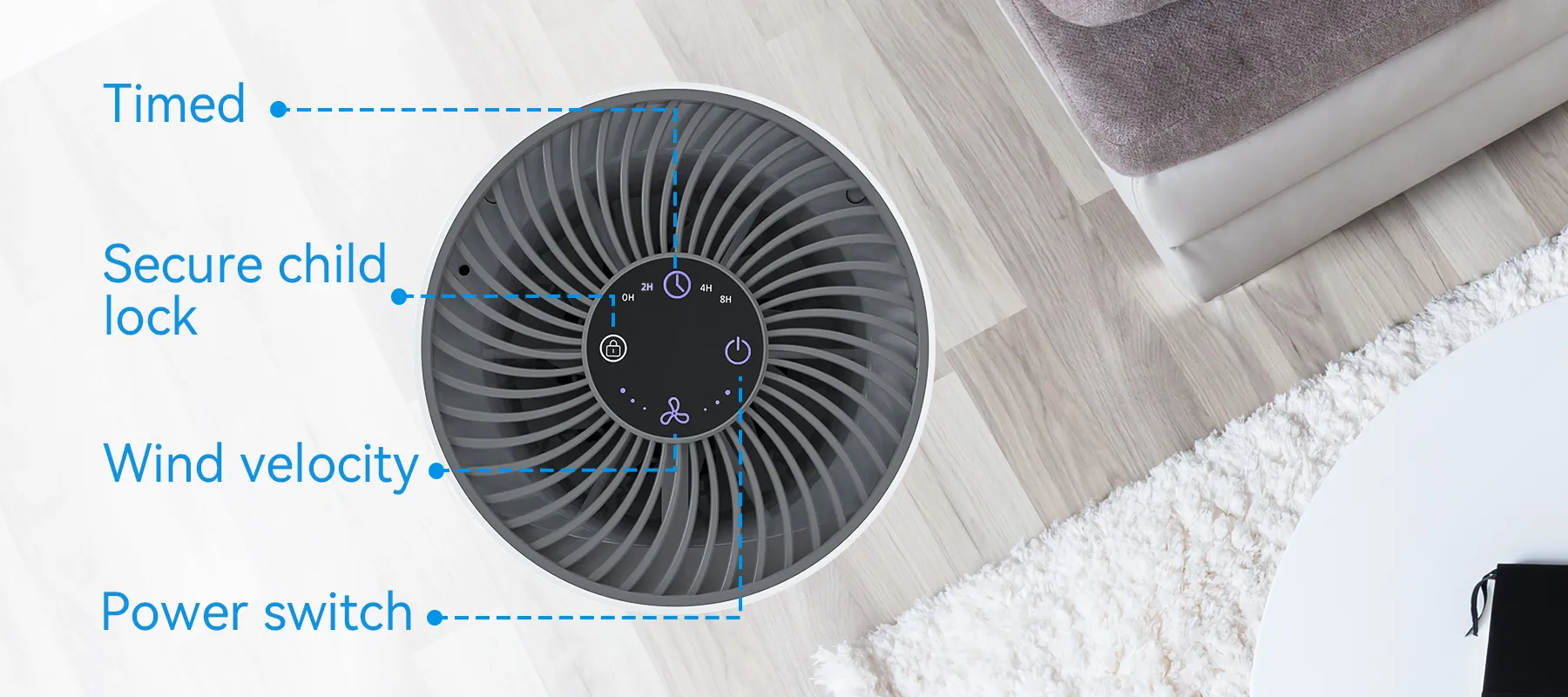 - 360° All-Around Purification: The air intake design ensures thorough and complete purification of the room's air.