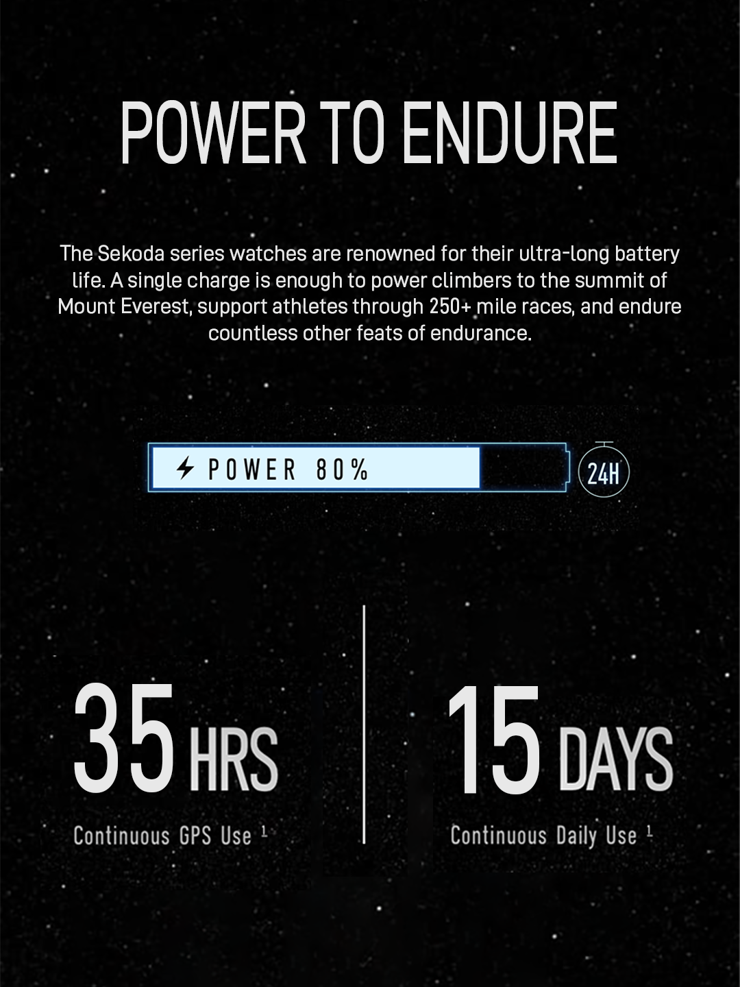 - Ultra-Long Battery Life- Powerful battery provides 15 days of daily use or 35 hours in GPS mode.