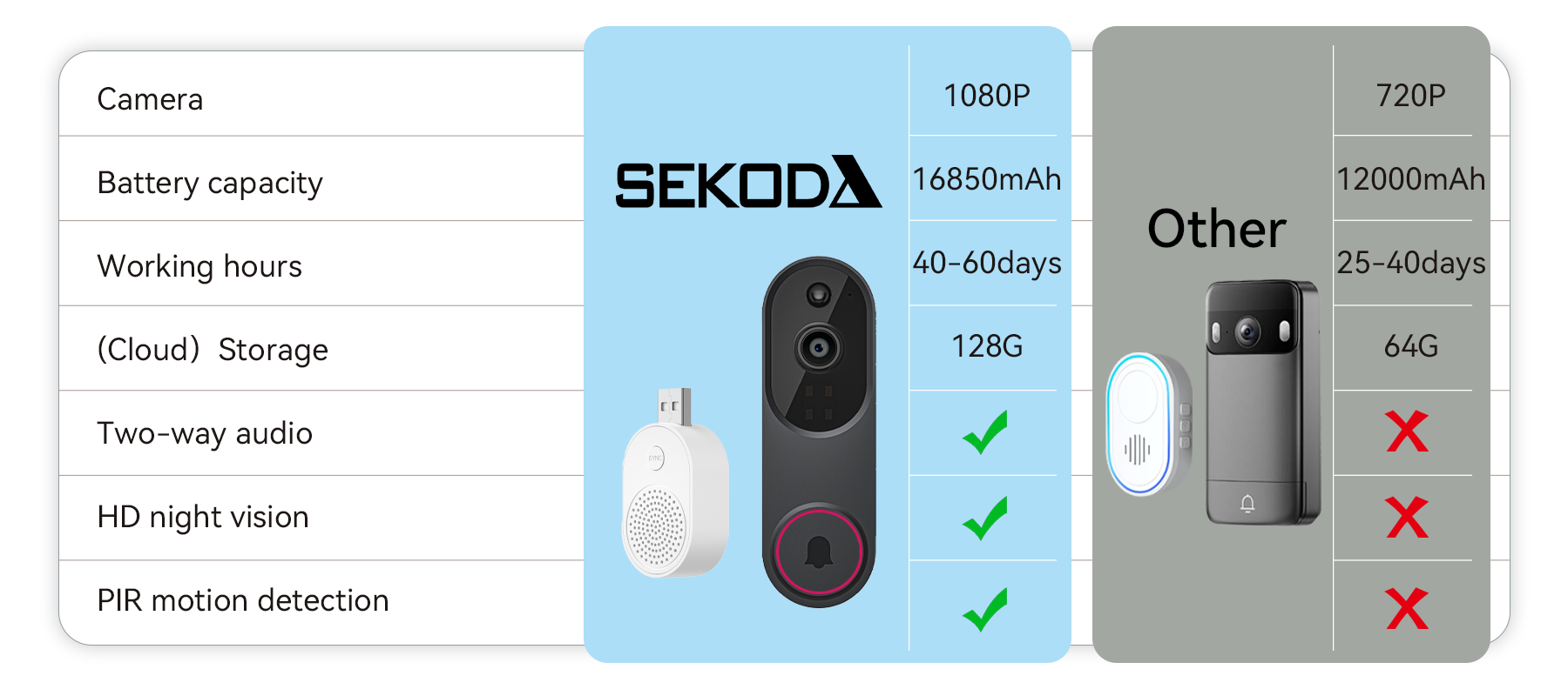 The Sekoda Video Doorbell Camera was the result. With advanced AI detection and HD night vision, it ensures your home is reliably protected, day and night. Sekoda's core mission is to never let you down and to always keep your family safe.